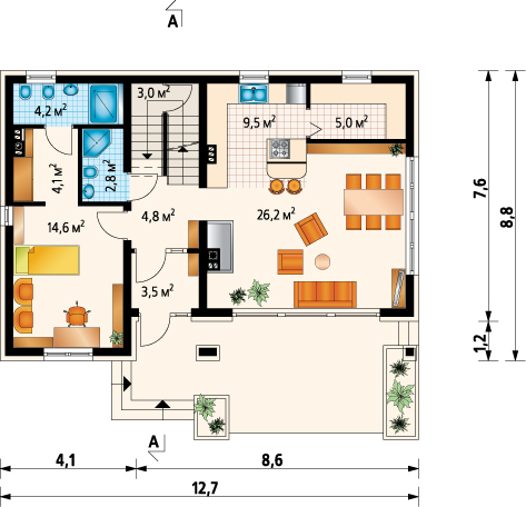 гардероб | 3.4 м2 | / 5.4 м2 |