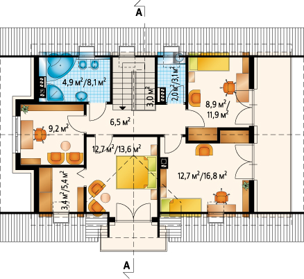 Мансардный этаж | 63.3 м2 | / 58.9 м2 |